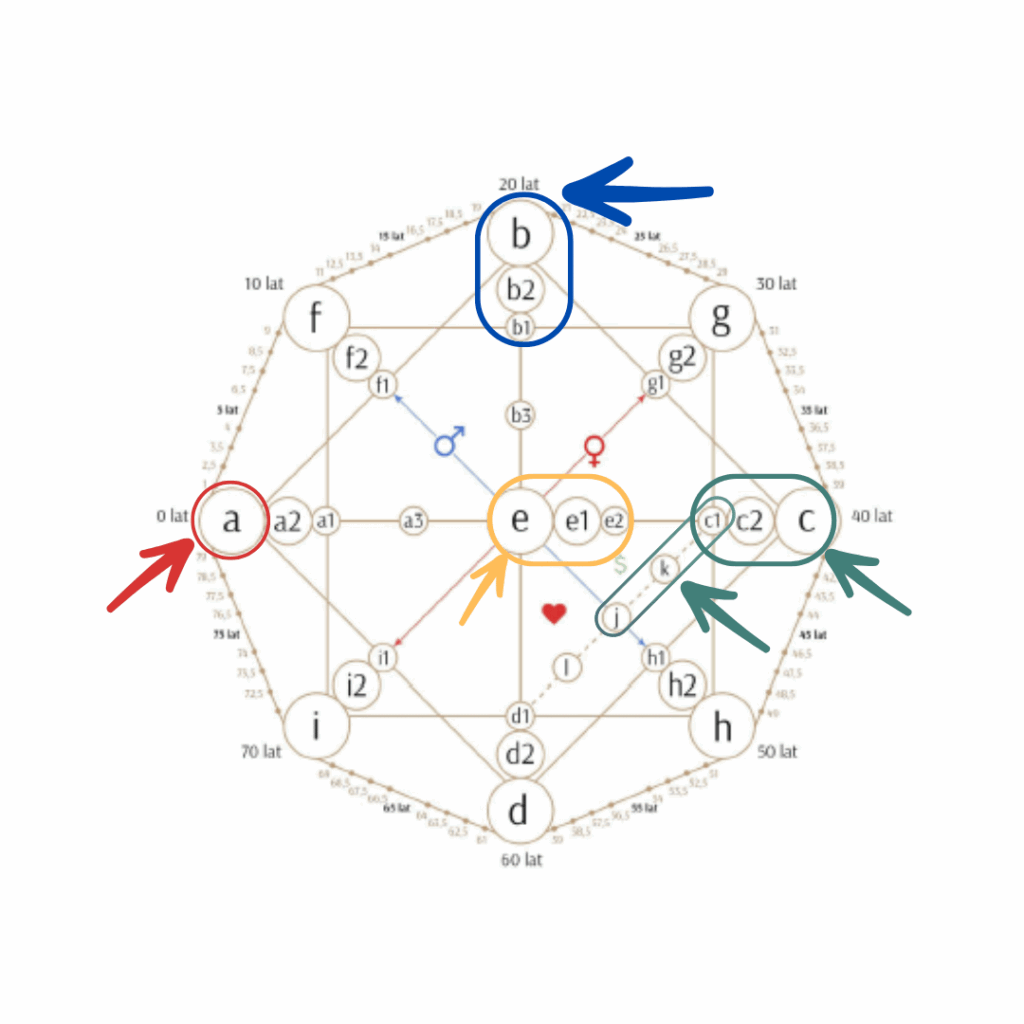 - Liczby w pozycji -b, b2, b1 pokazują jakie talenty posiada osoba